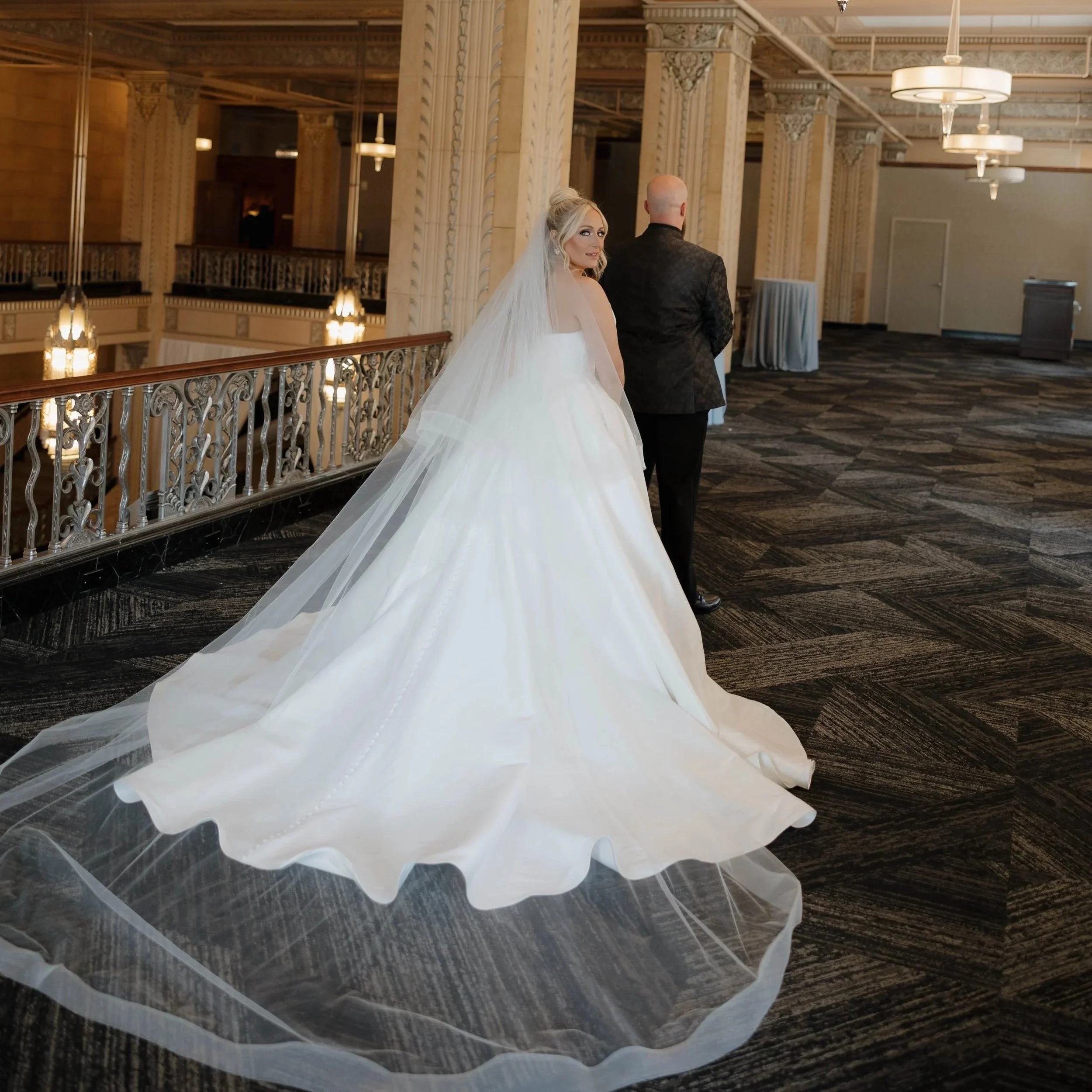 A cathedral veil creates a statement. It trails behind you and adds a sense of formality. This style feels especially striking in larger venues or classic settings.